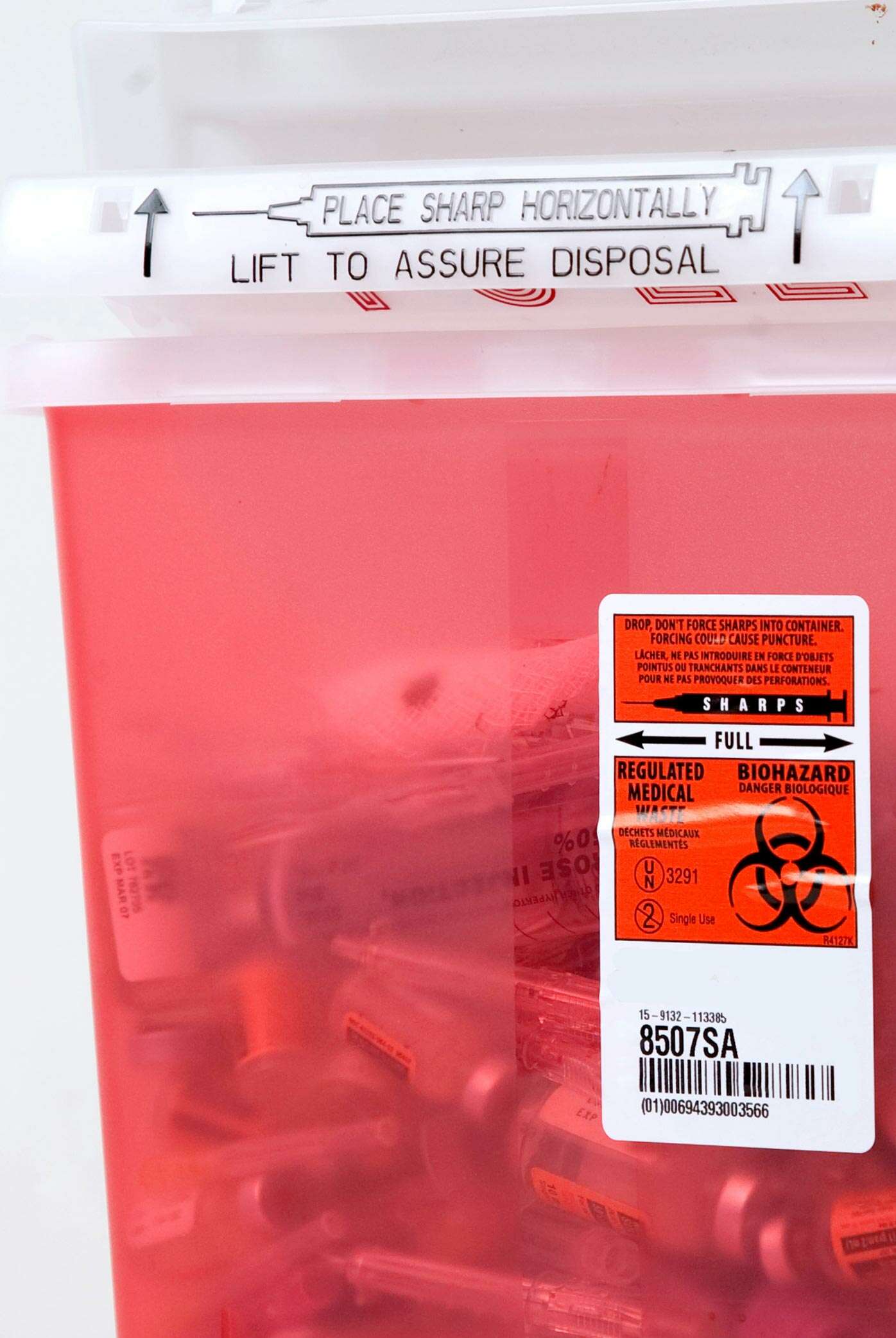 Typical hospitals and clinics can produce large amounts of sharps waste each year, and improper disposal or transportation of sharps can lead to accidents and injuries. For this reason, used sharps, like needles and scalpels, are classed as biohazardous waste, and every container with sharps inside has to have a sharps warning label.